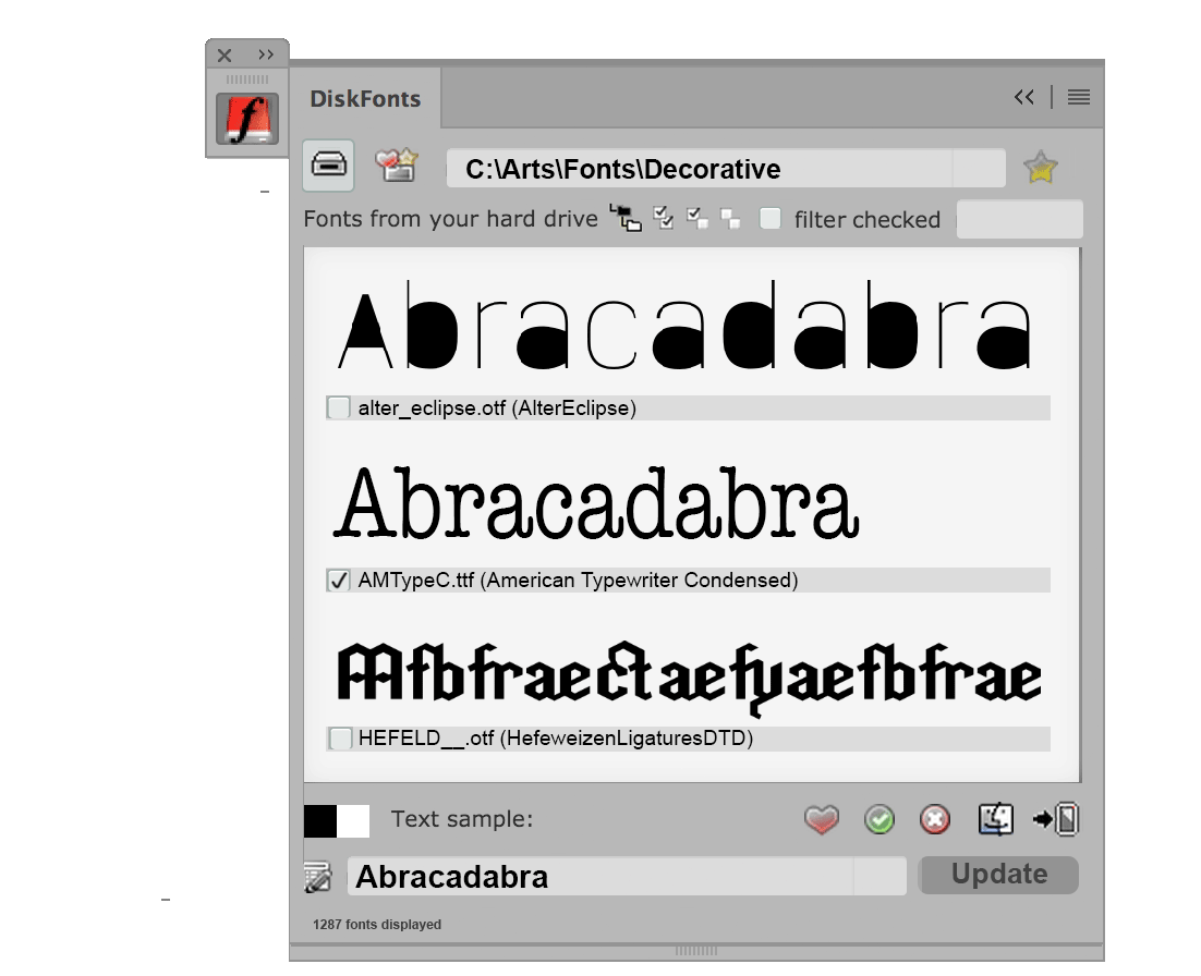 DiskFonts, Schriftvorschau von allen auf der Festplatte vorhandenen Schriften